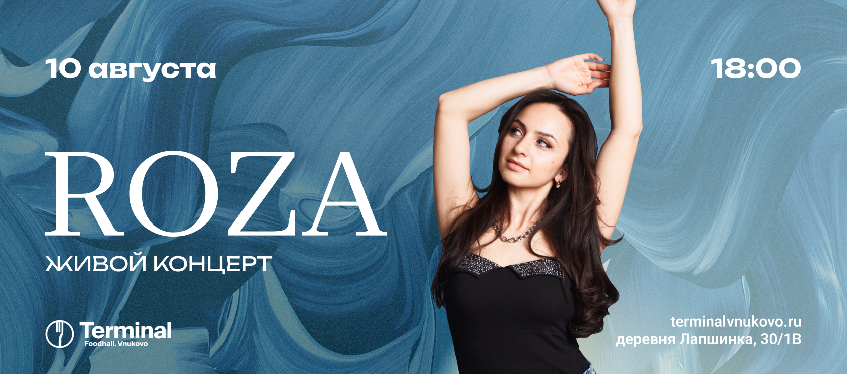 Живой концерт ROZA — выступление яркой и талантливой певицы под софитами большой сцены Terminal Foodhall Vnukovo!